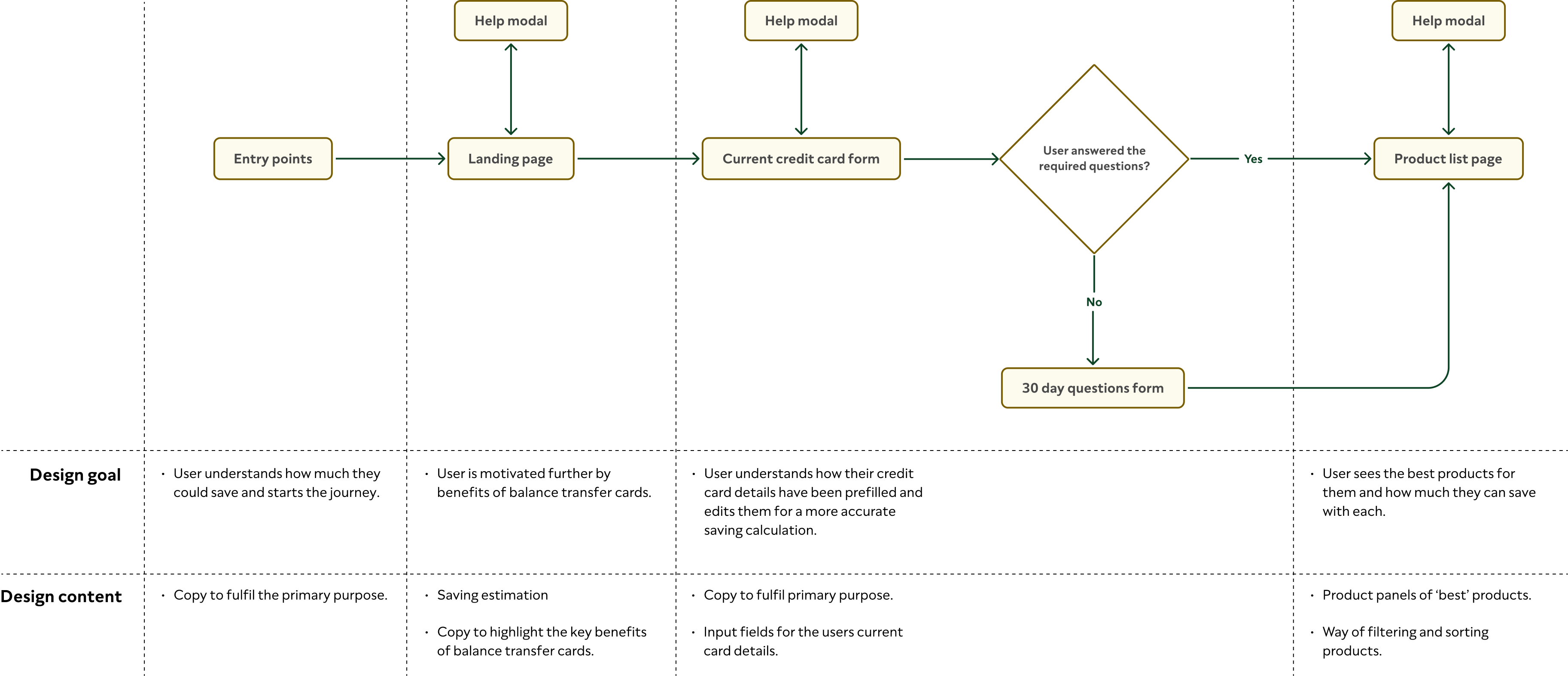 With key insights identified and the problem defined, I started developing solutions – from the user flow through to conceptual UI.