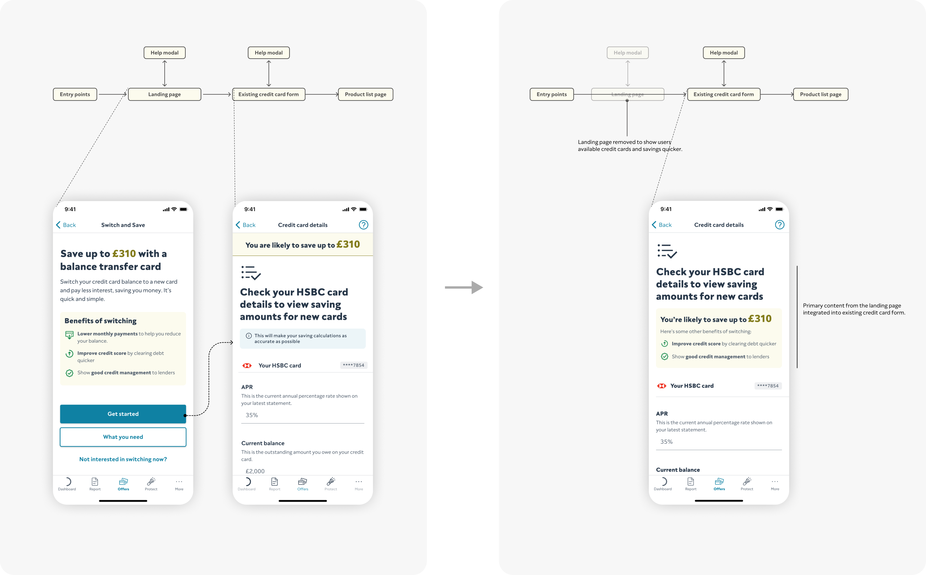 • Add entry points from dashboard, cards tab, or credit report. • Target users with card debt or interest.