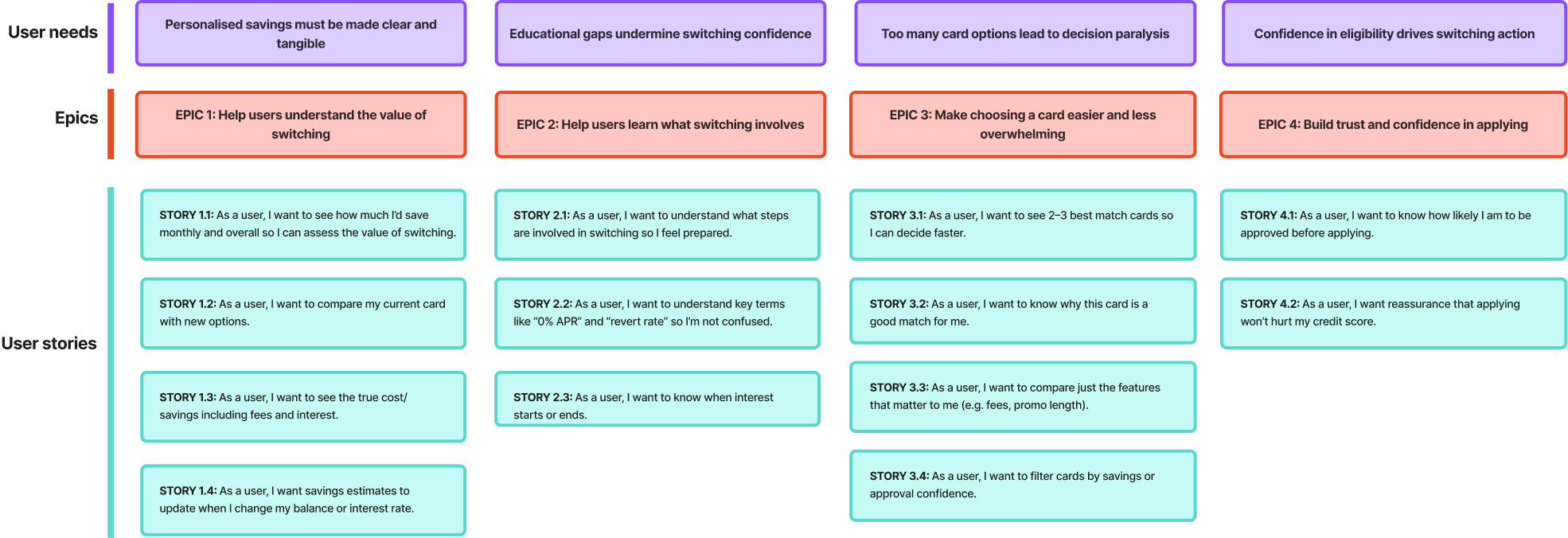 User Needs, Epics & Stories