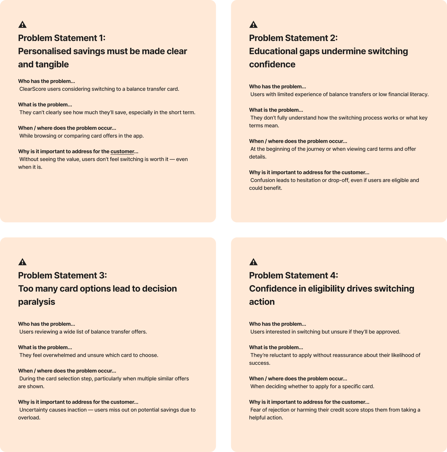 Unclear value, too many choices, and low confidence prevent users from switching — even when it would save them money and reduce interest payments.